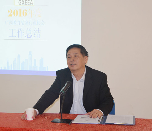 廣西教育裝備行業(yè)協(xié)會(huì)陳鐵華會(huì)長(zhǎng)在會(huì)上做了2016年度工作總結(jié)和下一年度工作計(jì)劃報(bào)告,他表示,2016年協(xié)會(huì)基本完成各項(xiàng)工作任務(wù)目標(biāo),并對(duì)這一年來(lái)上級(jí)領(lǐng)導(dǎo)和各成員單位對(duì)協(xié)會(huì)各項(xiàng)工作的支持表示衷心感謝!隨后,陳會(huì)長(zhǎng)簡(jiǎn)要總結(jié)了這一年來(lái)協(xié)會(huì)完成工作情況,并介紹了各項(xiàng)工作取得的成果,特別是最近圓滿完成籌辦第71屆中國(guó)教育裝備展示會(huì)任務(wù),獲得了政府及社會(huì)各界的極大肯定,這與大家的不斷支持和努力是分不開(kāi)的。對(duì)于即將到來(lái)的新一年,陳會(huì)長(zhǎng)做了協(xié)會(huì)工作任務(wù)布署,未來(lái)一年,廣西教育裝備行業(yè)協(xié)會(huì)將進(jìn)行機(jī)構(gòu)改革,成立各個(gè)專業(yè)分會(huì),發(fā)展推廣隊(duì)伍,讓企業(yè)全方位參與協(xié)會(huì)工作;不斷加強(qiáng)管理,形成寬松、互動(dòng)、共贏的環(huán)境,建立公正、公平、嚴(yán)明的規(guī)章制度,更好的服務(wù)于企業(yè),促進(jìn)廣西教育裝備行業(yè)良好發(fā)展。最后,陳會(huì)長(zhǎng)對(duì)南寧千年工藝股份有限公司、南寧千帆教學(xué)科技有限公司給予本次會(huì)議的大力支持表示感謝,并祝愿協(xié)會(huì)各成員單位事業(yè)興旺發(fā)展!