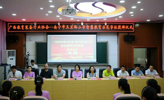 2018年6月27日上午,廣西教育裝備行業(yè)協會智慧教育示范學校掛牌儀式在南寧玉蘭路小學舉行,標志著南寧市玉蘭路小學新時代教育信息化發(fā)展駛入了快車道,具有里程碑式重要意義。與會領導、全國教育裝備界的各知名企業(yè)代表、愛心人士、家長代表、教師代表,一同出席了活動,見證了這一歷史性的時刻。